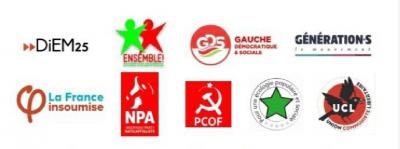 Organisations signataires : Diem 25 (Mouvement pour la démocratie en Europe 2025), Ensemble !, Gauche démocratique et sociale (GDS), Génération.s, La France insoumise, Nouveau parti anticapitaliste (NPA), Parti communiste des ouvriers de France, Pour une écologie populaire et sociale (PEPS), Union communiste libertaire (UCL)