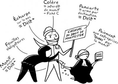 De plus, le gouvernement annonce pour début février l’adoption d’une nouvelle loi liberticide : création d'un fichier de manifestants, interdiction individualisée de manifester et assignation à résidence, fouilles et palpations à l’entrée des manifestations, pénalisation des personnes qui participent à une manifestation non déclarée...)