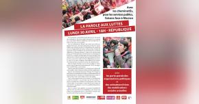 La Gauche démocratique et sociale (GDS) a proposé la tenue d'un meeting unitaire. Celui-ci a eu lieu le 30 avril place de la République à l'appel de 9 formations : Ensemble, EELV, GDS, Génération.s, NPA, Nouvelle Donne, PCF, PCOF, R et S.