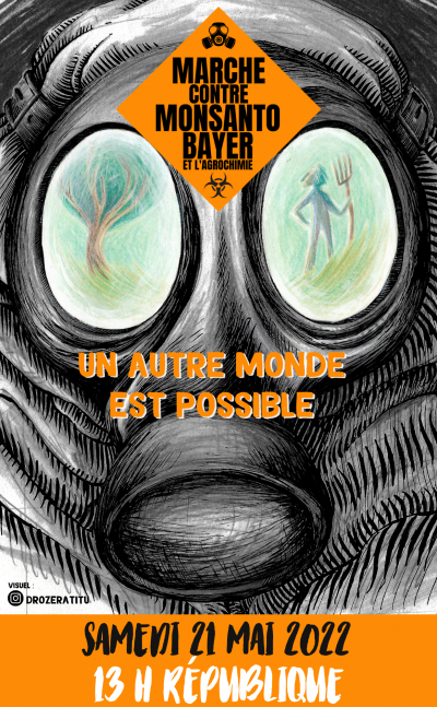 Alors, Habitant·es de la Terre déterminé·es à promouvoir un autre modèle agricole et alimentaire, écologique, respectueux du vivant et juste socialement pour les paysan·nes et l'ensemble de la population : soyons nombreux·ses dans la rue samedi 21 mai 2022, maintenons la pression sur les acteurs qui empoisonnent notre futur ! Marchons contre Monsanto-Bayer et l’agrochimie !