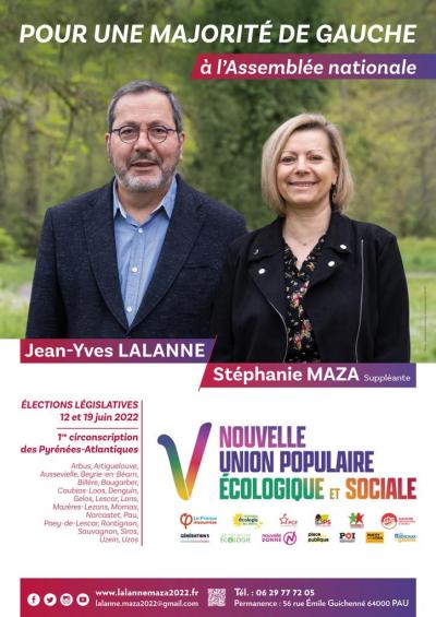 Depuis plusieurs semaines, les discussions avec les groupes d’actions de la France insoumise aboutissent à considérer la candidature de Jean-Yves Lalanne comme conforme au projet de l’Union populaire. Mais cette investiture n’est pas confirmée. Les discussions nationales engagées entre la FI-UP et les socialistes, ainsi la position de la majorité du Conseil national du PS écartent petit à petit les objections de certains contre la candidate suppléante. Celle-là même qui, on l’a vu, a gagné dans le cadre d’un regroupement unitaire, face à la candidate bayrouiste, aux élections départementales en 2021 !