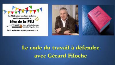 Lors d'une rencontre le 23 septembre 2023 avec la FSU des Vosges, notre camarade Gérard Filoche a fustigé les attaques envers le code du travail. Merci à notre camarade Jean-Pierre Côté (GDS des Vosges) pour cette vidéo. https://www.youtube.com/watch?v=VBSMhJSHfN8