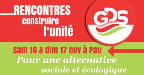 Pour une alternative sociale et écologique, la Gauche démocratique et sociale (GDS) organise des "Rencontres pour construire l'unité" les 16 et 17 novembre ) Pau (le programme et pour s'inscrire : contact@gds-ds.org).