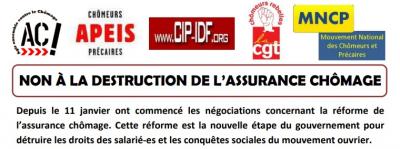 Contre cette politique violemment antisociale, nous exigeons : -l’élargissement de l’accès à l’indemnisation, avec comme référence le Smic, à tous les chômeurs et chômeuses, -le maintien du système actuel de l’assurance chômage, avec des cotisations reposant sur la valeur ajoutée totale de l’entreprise, -la gestion démocratique de l’assurance chômage, -l’arrêt des contrôles et sanctions à l’encontre des chômeurs, chômeuses et précaires.Soyons en mesure de nous faire entendre, toutes et tous ensemble, chômeuses, chômeurs, salariés.es, précaires avec ou sans papiers.