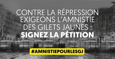 Nous reproduisons ici une pétition "pour l'amnistie des gilets jaunes" qui est à retrouver et à signer sur : https://amnistiegj.fr/