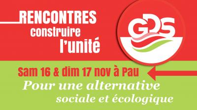 Les militant.e.s du réseau de la Gauche démocratique et sociale (GDS) organisent deux journées de débats à Pau les 16 et 17 novembre : « Construire l’unité pour une alternative sociale et écologique ». Des syndicalistes, des militants associatifs, des universitaires et des militants politiques interviendront sur les trois urgences (sociales, écologiques et démocratiques) tout en les replaçant dans le contexte international actuel.