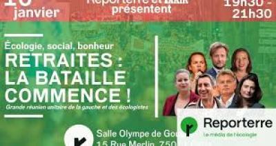 Le social au cœur À Gauche Retraites : la bataille 2023 commence 12/01/2023 | redaction Tweet Ce 10 janvier 2023, la gauche unie se lançait dans la bataille contre cette nouvelle brutale réforme des retraites. Un extrait du meeting initié par Fakir et Reporterre. https://www.youtube.com/watch?v=2Iwzj9ZmHDU