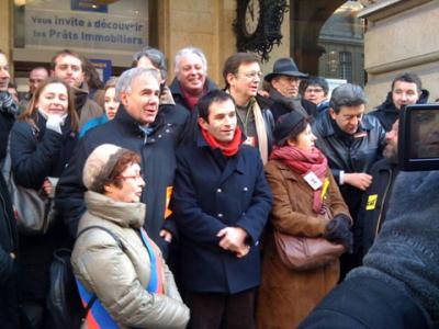 Il y avait les militants syndicaux de la CGT, de FO, de Sud-PTT) et des responsables de tous les partis de gauche : Benoît Hamon, porte-parole du PS, Olivier Besancenot de la LCR, Pierre Laurent, de la direction du PCF, Jean-Luc Mélenchon du Parti de Gauche, Georges Sarre (MRC) ainsi que le maire du IIe arrondissement Jacques Boutault (Verts) Clémentine Autain, Yves Salesse, Gérard Filoche. A l’appel du “Comité national contre la privatisation de La Poste”, et de tous ses relais locaux, la population était conviée à venir signer devant les bureaux de Poste "l'appel national contre la privatisation de La Poste, pour un débat public et un référendum sur le service public postal". Régis Blanchot, au nom de Sud-PTT, a appelé à "lutter par tous les moyens pour obtenir l'abandon du projet". "Ca fait plaisir de voir la gauche réunie", a ajouté le secrétaire général de FO Communication, Jacques Lemercier. Benoît Hamon a dénoncé : "l'immense paradoxe consistant à ce que, quasiment dans le même souffle, le président de la République en appelle au retour de la puissance publique et simultanément, prépare le passage de La Poste en société anonyme". Selon l’AFP, Olivier Besancenot en a appelé à la mobilisation, outre du personnel de La Poste, "des usagers, des élus qui sont attachés aux services publics des petites communes". Pierre Laurent a souligné "la signification de la présence de toutes les forces de gauche, c'est le signal d'une relance d'une bataille pour obtenir l'abandon définitif de ce projet". A Lille, également, la première secrétaire du PS et maire de la ville, Martine Aubry, a participé dans la matinée à un rassemblement avec les organisations syndicales (Sud, CFTC, FO et CGT) sur le même thème, devant le bureau de poste du quartier de Wazemmes à Lille. Elle était accompagnée d'une petite centaine de manifestants, dont plusieurs élus socialistes et le secrétaire national du PS aux services publics, Razzy Hammadi. Celui-ci avait recensé, à la mi-journée, "plus de 180 points de manifestation avec des élus et militants socialistes".[caption id="attachment_3309" align="alignnone" width="120"]