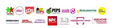 Signataires : À nous la démocratie ; Arguments pour la lutte sociale (Alputsoc) ; Ensemble ! ; Gauche démocratique et sociale (GDS) ; Gauche écosocialiste (GES) ; Gauche républicaine et socialiste ; Génération.s ; Les Écologistes ; Nouveau parti anticapitaliste – l’Anticapitaliste ; Nouvelle donne ; Parti Socialiste (PS) ; Place publique ; Pour une écologie populaire et sociale (Peps) ; Rejoignons-nous ; Réseau Bastille.