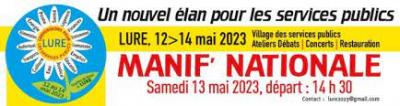 Nous publions ici l'appel "un nouvel élan pour nos services publics", car les services publics sont notre bien commun à toutes et tous. A Lure (en Haute-Saône), du 12 au 14 mai 2023 de nombreux débats sont prévus pour "défendre les services publics, les étendre, les améliorer, les démocratiser". Une manifestation nationale aura lieu le samedi 13 mai à Lure (départ 14h30). Pour tout contact : lure2023@gmail.com. site internet : nesp2023.com. Le programme est à retrouver en cliquant sur : nesp2023.com/programme .