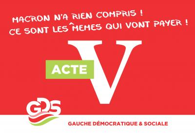 Un acte V de la mobilisation sociale s’impose à toutes les forces progressistes citoyennes, syndicales et politiques. C’est dans l’unité que nous pourrons vaincre Macron et l’empêcher de mettre en œuvre l’acte II de sa politique de casse de l’assurance-chômage, de la fonction publique, et des retraites…