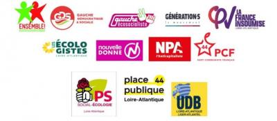 Les organisations politiques de Loire-Atlantique : Ensemble !, Gauche démocratique et sociale (GDS), Gauche écosocialiste (GES), Génération.s, La France insoumise (LFI), Les écologistes-EELV, Nouvelle donne (ND), Nouveau parti anticapitaliste (NPA-L’Anticapitaliste), Parti communiste français (PCF), Parti socialiste (PS), Place publique (PP), Union démocratique bretonne (UDB) appellent à se rassembler devant la Préfecture de Nantes mercredi 22 mai à 18h00 pour exiger :