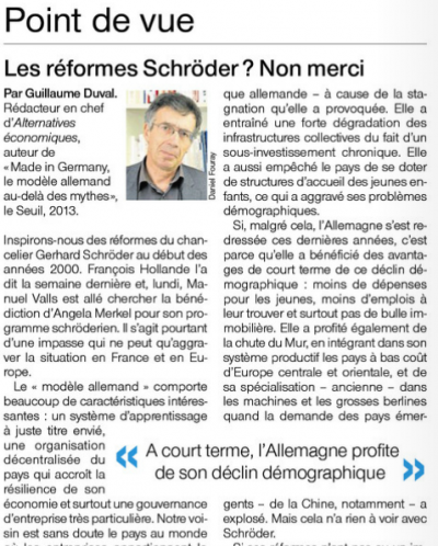 Par Guillaume Duval, rédacteur en chef d’Alternatives économiques, auteur de « Made in Germany, le modèle allemand au-delà des mythes », Éditions du Seuil, 2013.